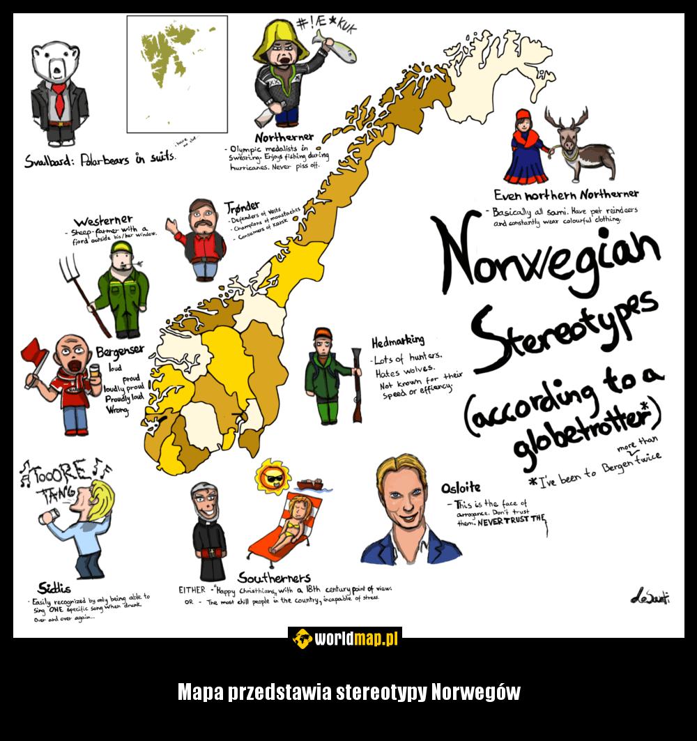 Mapa przedstawia stereotypy Norwegów